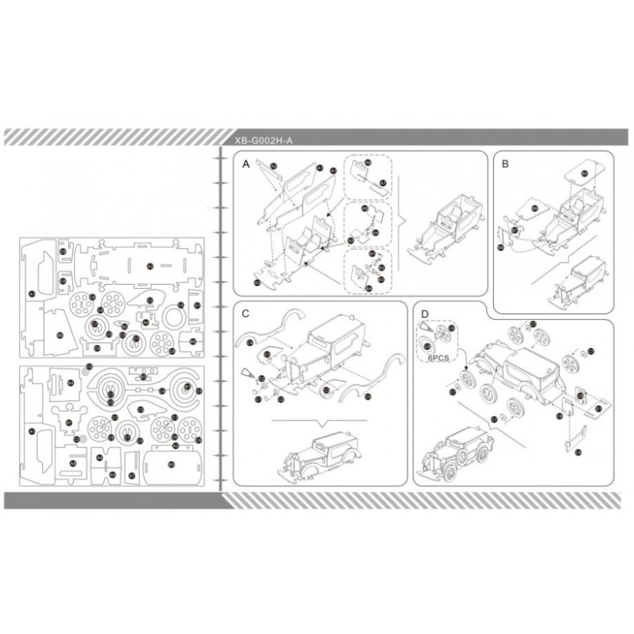 Puzzle 3D, V8 Model, cu 42 piese. Piesele sunt fabricate din material ecologic lemnos, debitat prin fascicul laser. Acestea vin partial predecupate si prinse in planse. Toate piesele au elemente de prindere si asamblare intre ele. Utilizatorul trebuie sa urmareasca cartea de instructiuni pentru asamblarea modelului de pe cutie. Produsul este destinat personelor de la varsta de 8 ani si are o dificultate medie. Cu ajutorul acestui Puzzle aveti posibiliatea de a va ocupa timpul liber cu ceva relaxant si sa va dezvoltati alte abilitati.
